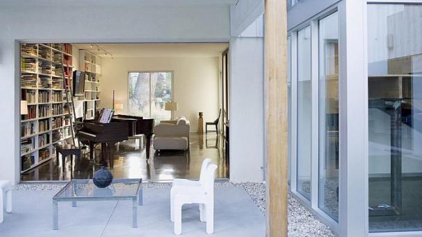 This apartment with nice shades of blue and a beautiful bathroom will help you to relax after work.